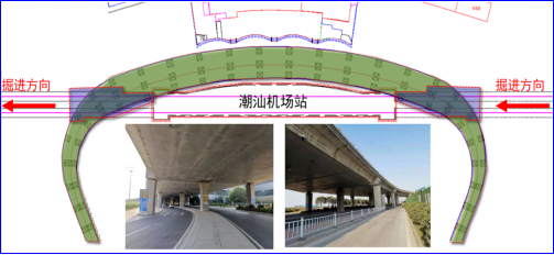 粤东城际铁路“一环一射线”潮州东至潮汕机场项目,线路自潮州东地下站引出,向西南沿枫春路走行,于枫溪广场转向潮汕路向南走行。下穿绿榕西路、广梅汕铁路。先后于如意路口设如意站、于华夏博物馆东侧设浮洋站,上跨潮汕环线高速后折向西走行,于既有潮汕站北侧设高架潮汕站,出站后折西北进入揭阳市境内,跨越汕梅高速公路,下穿甬莞高速公路后进入揭阳机场,于揭阳机场规划T2航站楼前预留揭阳机场T2站土建工程,于T1航站楼与交通中心间设潮汕机场城际站至终点登岗线路所。
