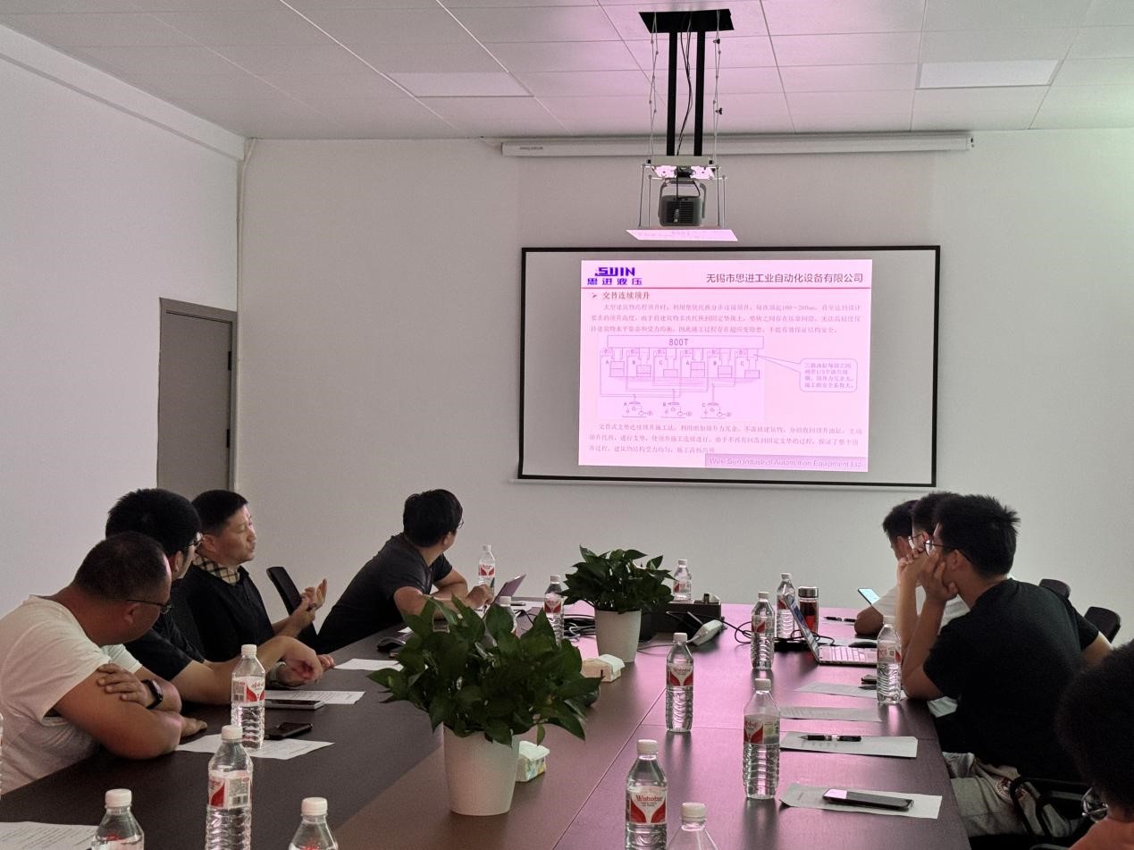 交流会议由上海天演建筑物移位工程股份有限公司副总工程师、生产中心总监束学智主持;邀请合作企业无锡市思进工业自动化设备有限公司总经理徐文友、穆钜(上海)动力技术有限公司总经理张朝亮及穆钜(上海)动力技术有限公司工程师余勇担任主讲人。上海天演建筑物移位工程股份有限公司科技中心郑志远、闵军,生产中心高鹏、殷小军、班国锋、乔志贤、黄涛、孙鹏等技术骨干共计20余人参会。