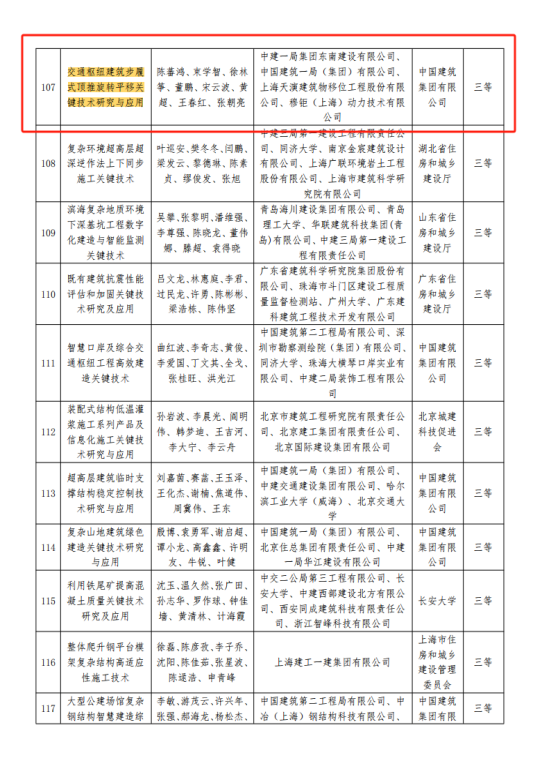 主要完成单位:中建一局集团东南建设有限公司、中国建筑一局(集团)有限公司、上海天演建筑物移位工程股份有限公司、穆钜(上海)动力技术有限公司;