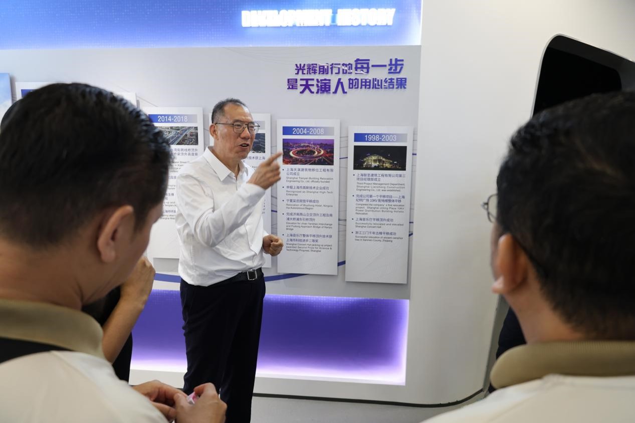 天演公司自创立以来,始终深耕建筑移位领域。多年来,公司以创新驱动发展,在建筑移位、桥梁顶升、结构托换、支座更换等工程项目积累了丰富经验,也成功打造多个标杆项目。此次展厅的建成,正是公司多年成果的集中展示,旨在通过全方位、沉浸式的体验,让合作伙伴深入了解企业实力与发展愿景。而此次马来西亚的PDCR 公司考察团一行来访,也是公司展厅首次亮相接待的第一个国际考察团。
