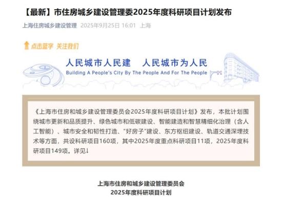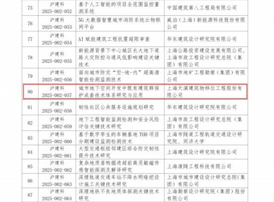 9 月 25 日,《上海市住房和城乡建设管理委员会 2025 年度科研项目计划》通过“上海住房城乡建设管理 ”公众号发布。公司与同济大学合作申报的课题《城市地下空间开发中既有建筑群保护成套技术体系研究与应用》获批立项。